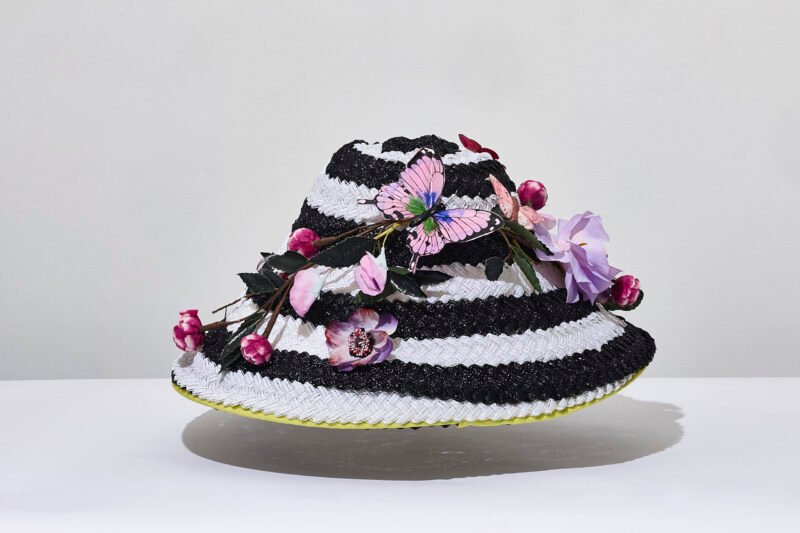 with silk flowers, and butterflies creating a